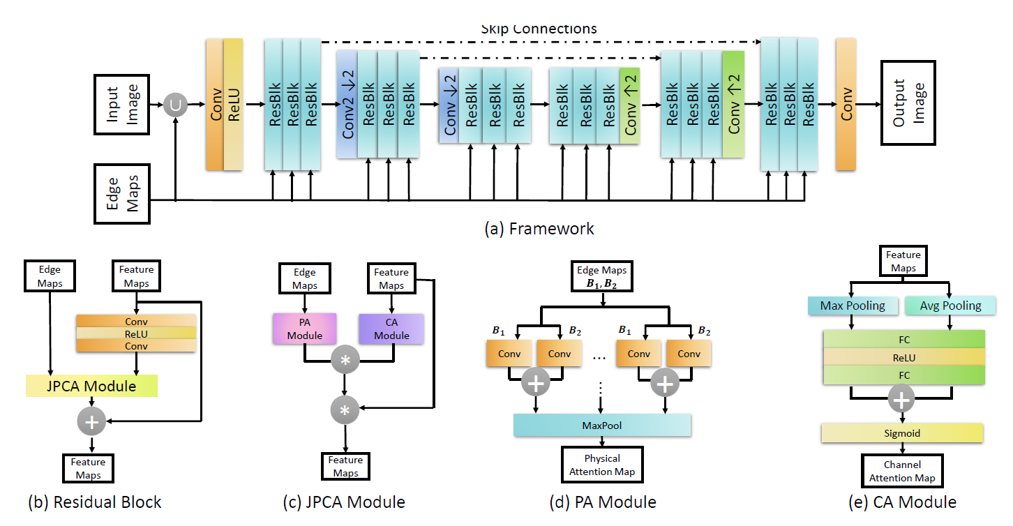 Residual Block中结构大概为\(F'=F+F \cdot(PA(E)\cdot CA(F))\)。