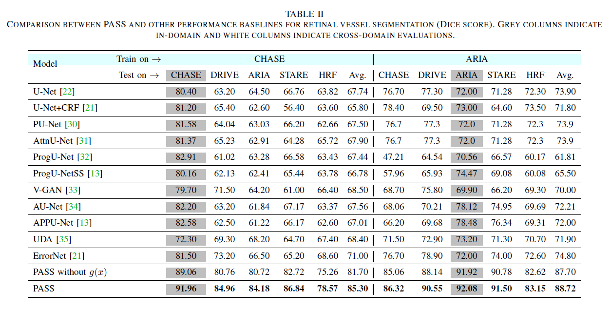 作者主要展示的是在某个数据集上训练,在其他数据集上测试,PASS方法相对而言,优势还是很明显的。
